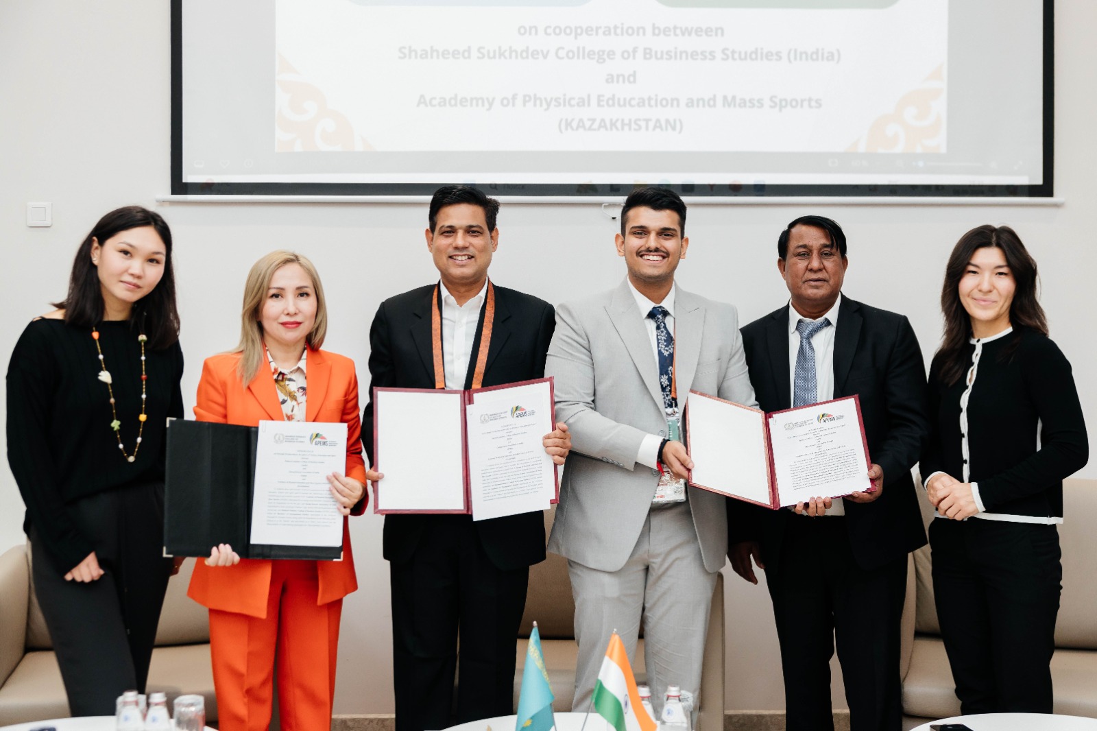 On September 8, 2024, the President of the Kazakh Kuresi Association in India and representatives of the Shaheed Sukhdev College of Business Studies visited the Academy of Physical Education and Mass Sports. During the meeting, they discussed the development of Kazakh Kuresi within the framework of the educational program "Teacher-Coach for Qazaq Kuresi", which is being implemented for the first time in Kazakhstan, developed by the Academy to improve the system of training athletes in the national sport. As part of this visit, a Memorandum of Cooperation was signed aimed at developing sports education, in particular Sports Management. The cooperation involves the organization of joint scientific and technological research with the involvement of faculty, student exchange, holding conferences, seminars of various levels and implementing joint educational programs. The visit of the Indian delegation to the Academy of Physical Education and Mass Sports was timed to coincide with the 5th World Nomad Games in Astana.