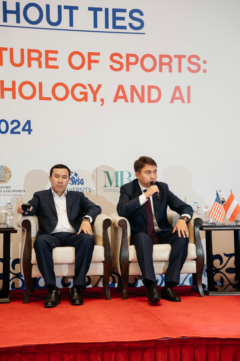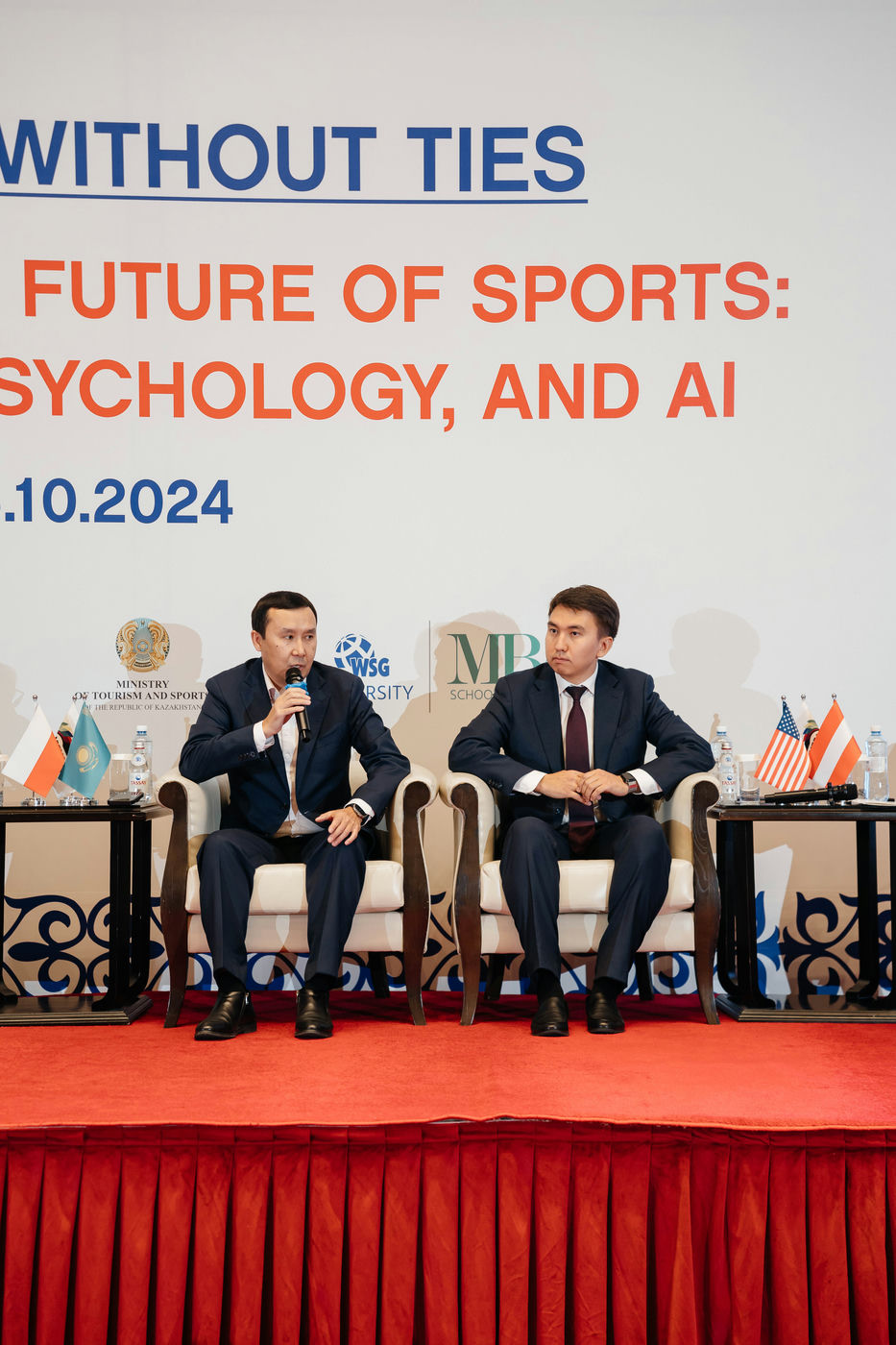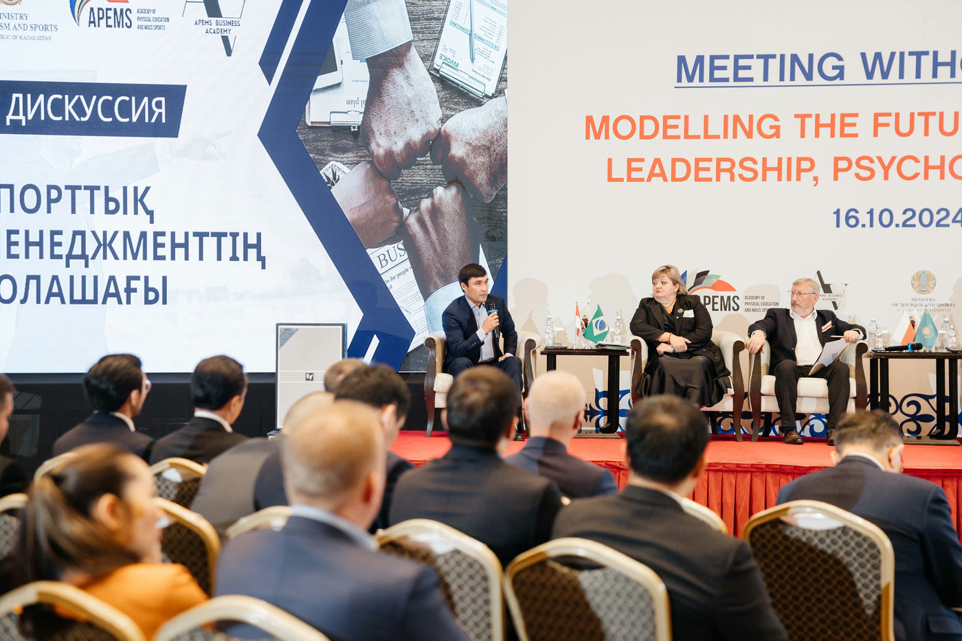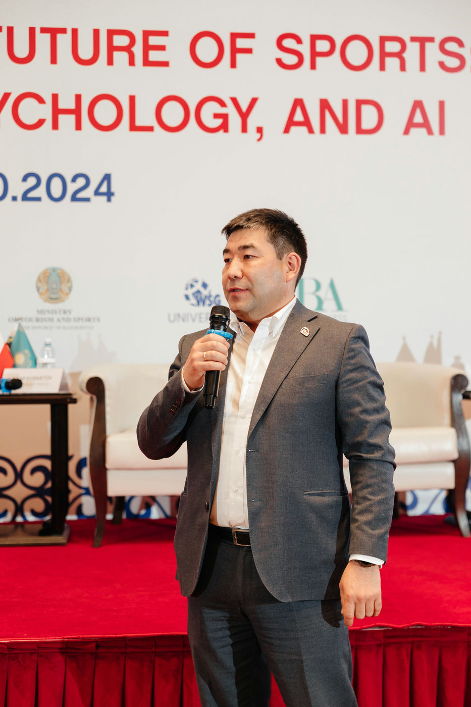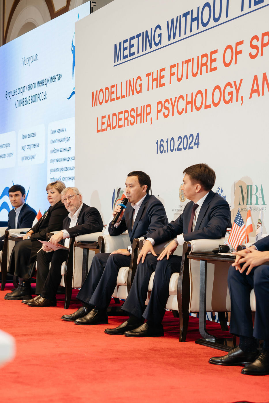 Additionally, Azamat Bolatuly participated as an expert in the first panel discussion on the topic "The Future of Sports Management." During the discussion, he addressed questions regarding the current state of sports management in our country and the measures being taken at the government level to improve it. In his speech, he highlighted the new competencies and skills that modern sports managers need to develop to successfully adapt to digitalization and technological advancements.