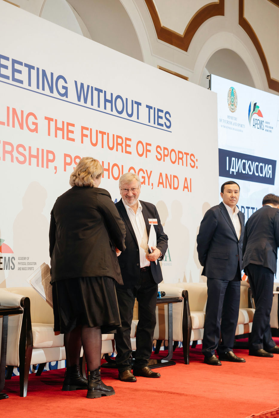 At the MEETING WITHOUT TIES event organized by the Academy of Physical Education and Mass Sports, with the support of the Ministry of Tourism and Sports of the Republic of Kazakhstan, Azamat Bolatuly Imashev - Deputy Chairman of the Committee for Sports and Physical Culture, gave a welcoming speech, thanked the participants and emphasized the importance of cooperation in the field of sports management, as well as highlighting the current issues facing sports in Kazakhstan.