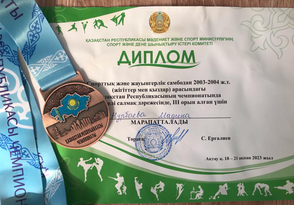 Аруна, заняла 2 место в весовой категории 47 кг, Мадина заняла 3 место в весовой категории 65 кг. Мы гордимся нашими спортсменками, которые продемонстрировали высокий уровень подготовки и настоящую силу духа на соревнованиях. Их упорство, решительность и желание победить являются прекрасным примером для всех наших студентов.