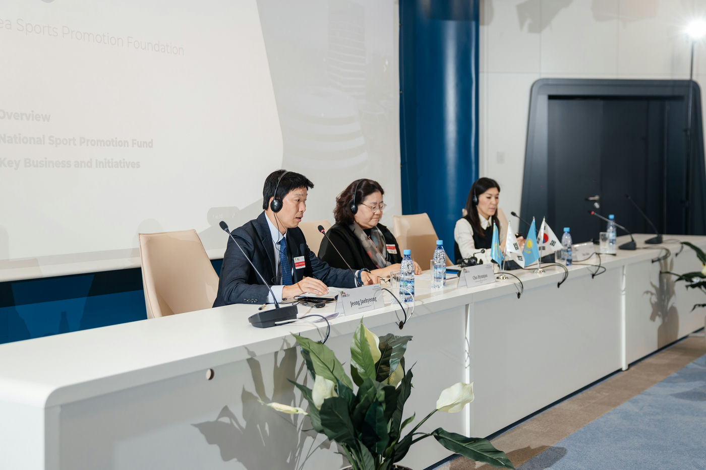 В течение 2 дней, 14 и 15 октября 2024 года ведущие ученые Республики Корея в области спортивной науки Cho Hyunjoo, Jeong Jaehyeong, Park Sangheon, Lee Wanyoung, Kim Jin Kook поделились опытом и эффективными кейсами реализации программ по развитию спортивной политики, индустрии спорта, проведению исследований на уровне спорта высших достижений и подходами к развитию массового спорта. Демонстрируя инфраструктуру Корейского института спортивной науки, ученые поделились масштабными национальными проектами по развитию спорта в Республике Корея через изменение инфраструктуры городов с акцентом на спортивные объекты и проведение спортивно-массовых мероприятий, показали важность многолетней работы с данными о динамики развития национального спорта, отношения корейских граждан к физической активности и доступности к спортивным объектам, решение демографических проблем через призму усиления спортивной инфраструктуры город Республики Корея. Слушателями была отмечена актуальность тем докладов корейских ученых и содержательный опыт ученых KISS, которым они с радостью поделились с участниками.