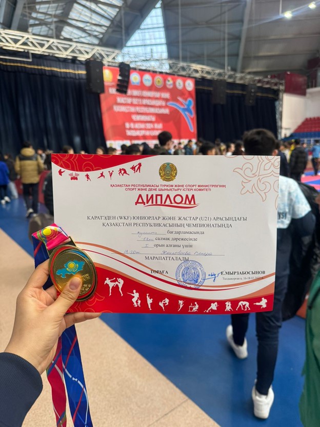 На чемпионате Республики Казахстан среди юниоров и молодежи по Каратэ (WKF) (U21) наша студентка Жаксыбаева Венера стала чемпионкой в своей весовой категории. Поздравляем!