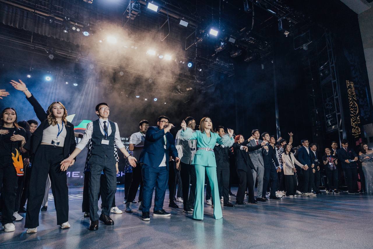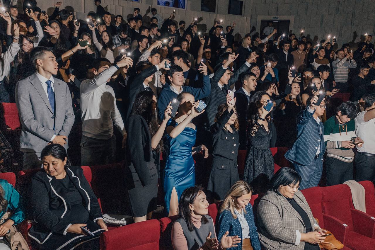 Вечером творческая группа студентов нашей Академии и студенты, добившиеся разных спортивных достижений, поделились своим опытом. Студентов, только поступивших в Академию, поздравила наша гостья, заслуженный деятель Казахстана, яркая звезда нашей эстрады, композитор и певица - Маржан Арапбаева.
