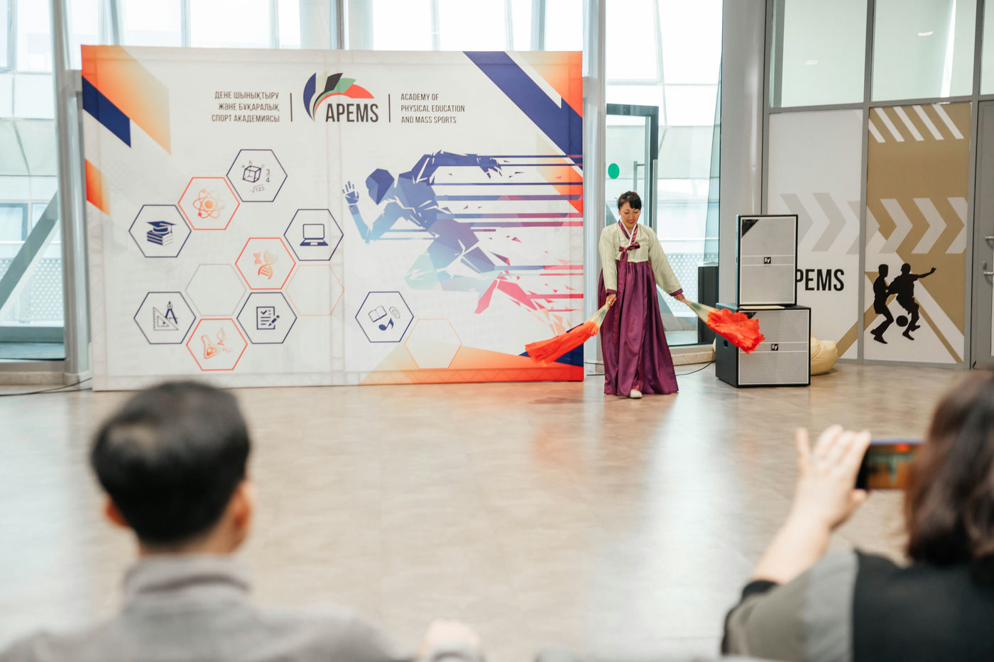 13 октября 2024 года в Академии прошла торжественная встреча ученых Корейского института спортивной науки прибывших в г.Астана для проведения курса глобальных лекций ученых Корейского института спортивной науки в рамках программы ЮНЕСКО. Делегацию ученых возглавил президент KISS, доктор Song Kanyoung. Гости познакомились с национальными традициями казахского народа, попробовали блюда казахской кухни. Студентами и преподавателями Академии подготовили культурную программу, в которой были представлены национальные виды спорта, игра на домбре, танцы.